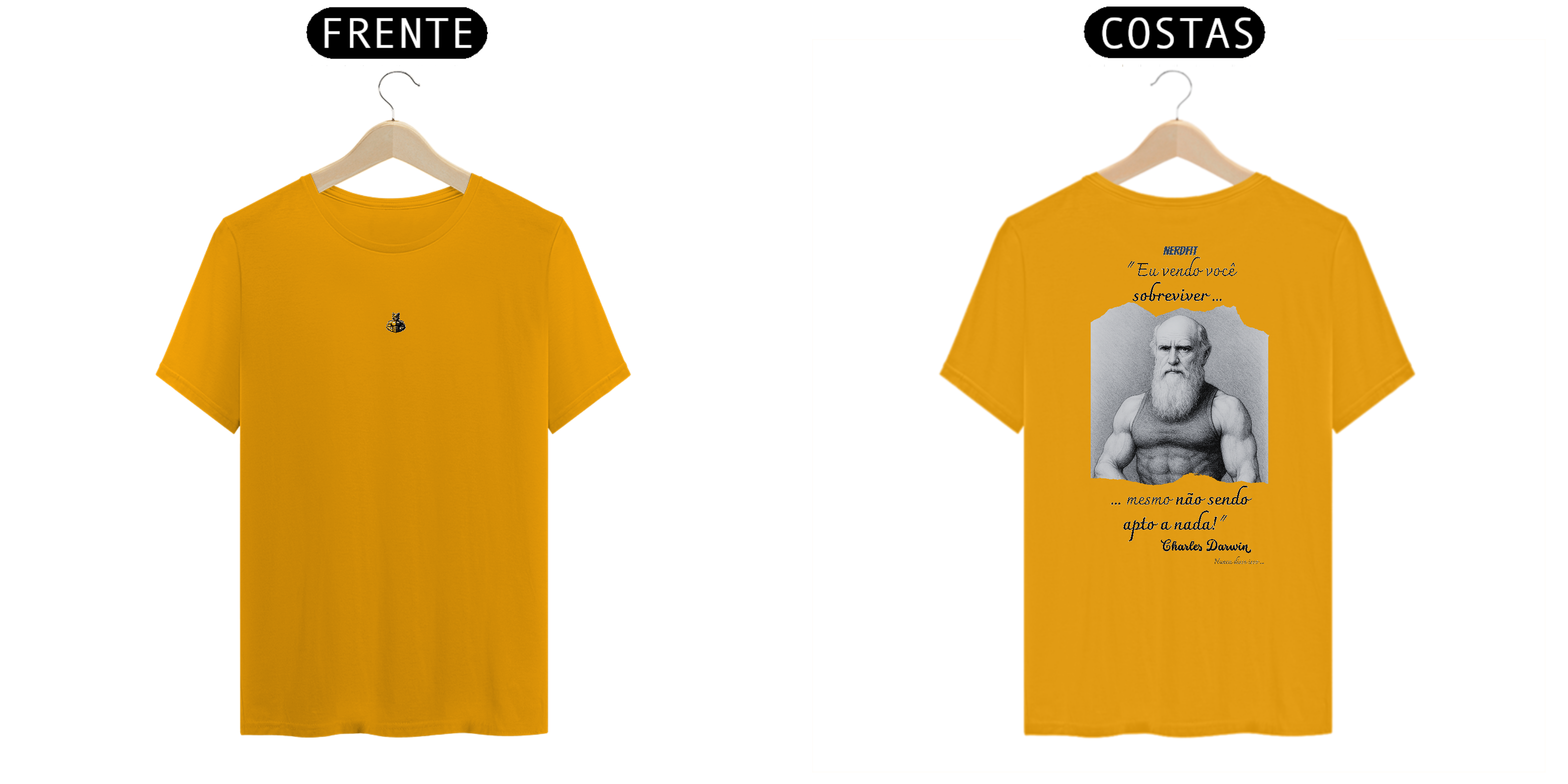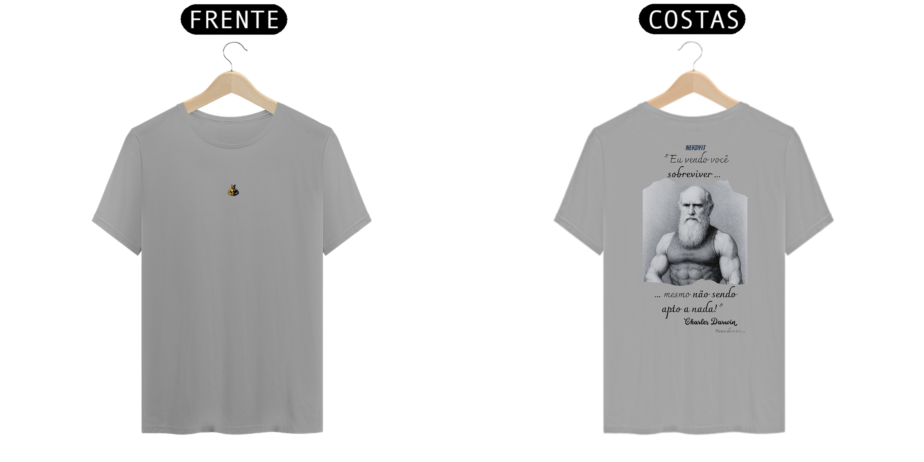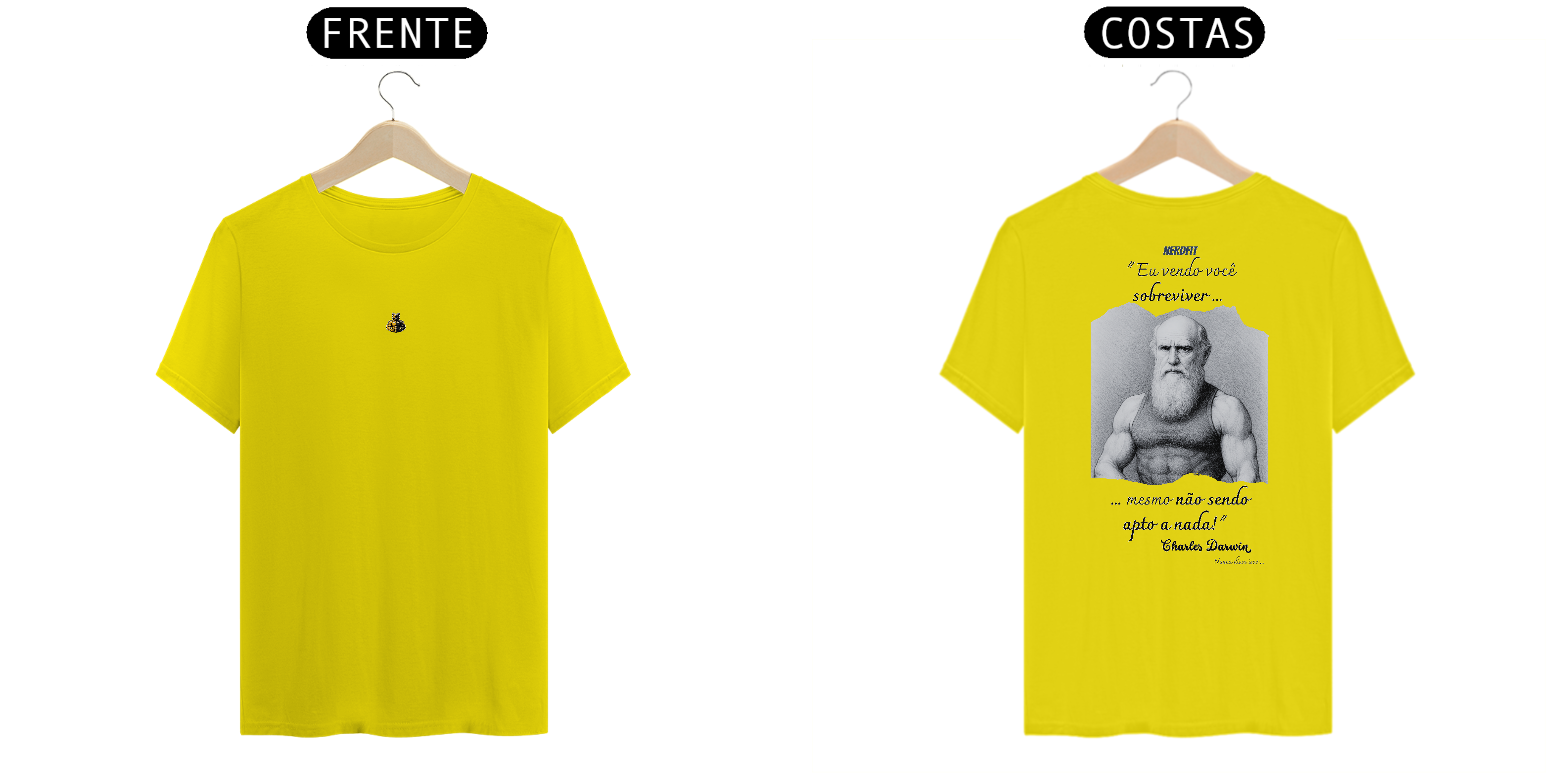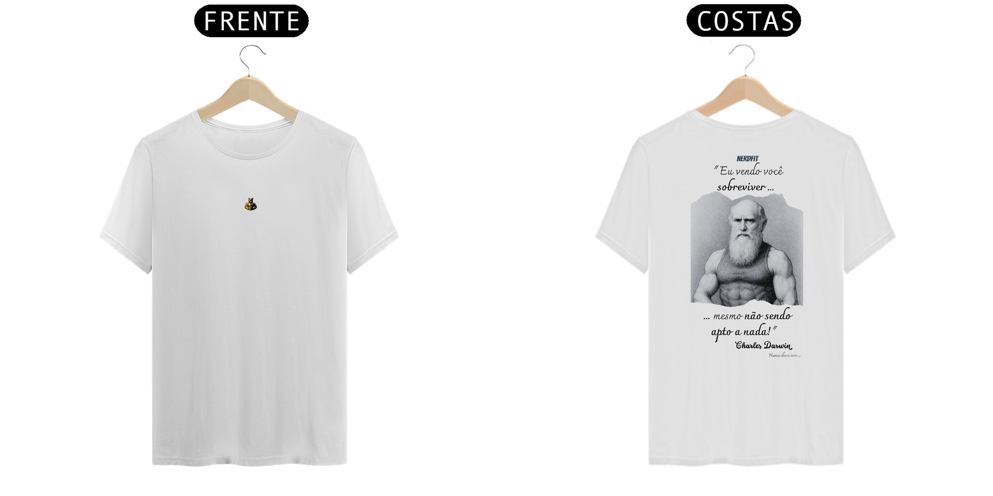 A nova camiseta da coleção Desmotivacional NerdFit traz ninguém menos que Charles Darwin em sua versão mais trincada, lançando uma frase que ele jamais disse — mas que todo mundo já sentiu na pele: