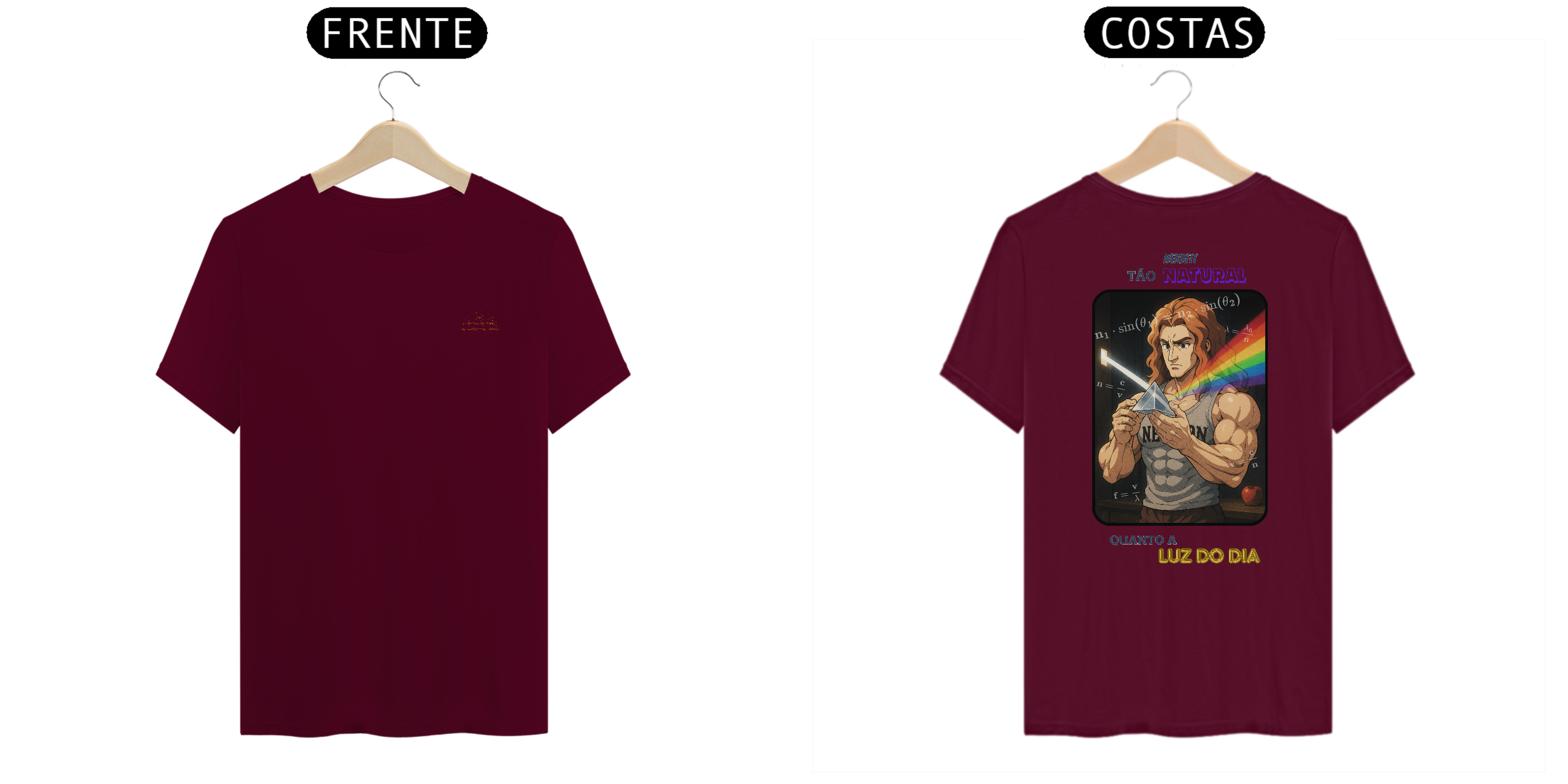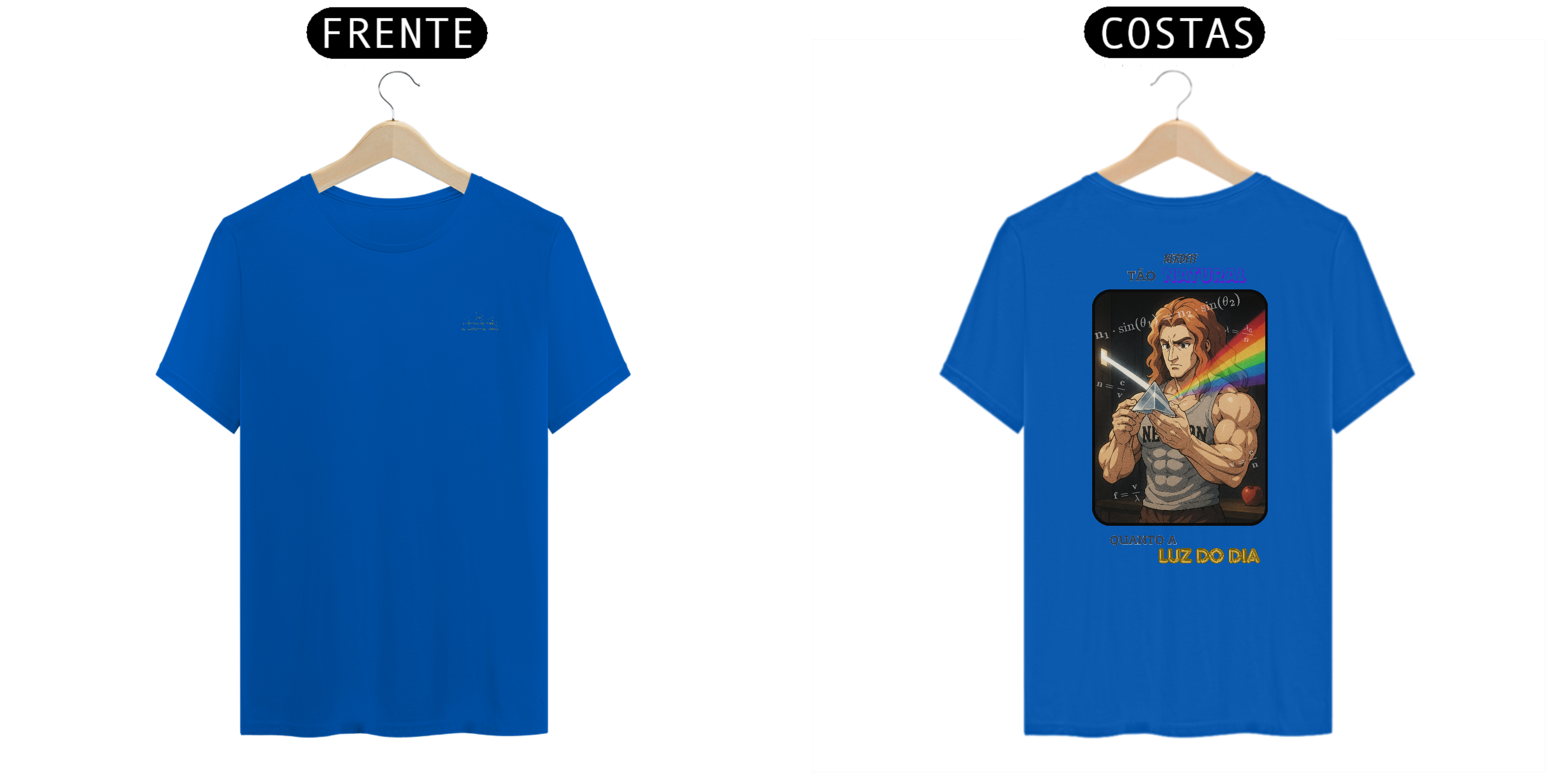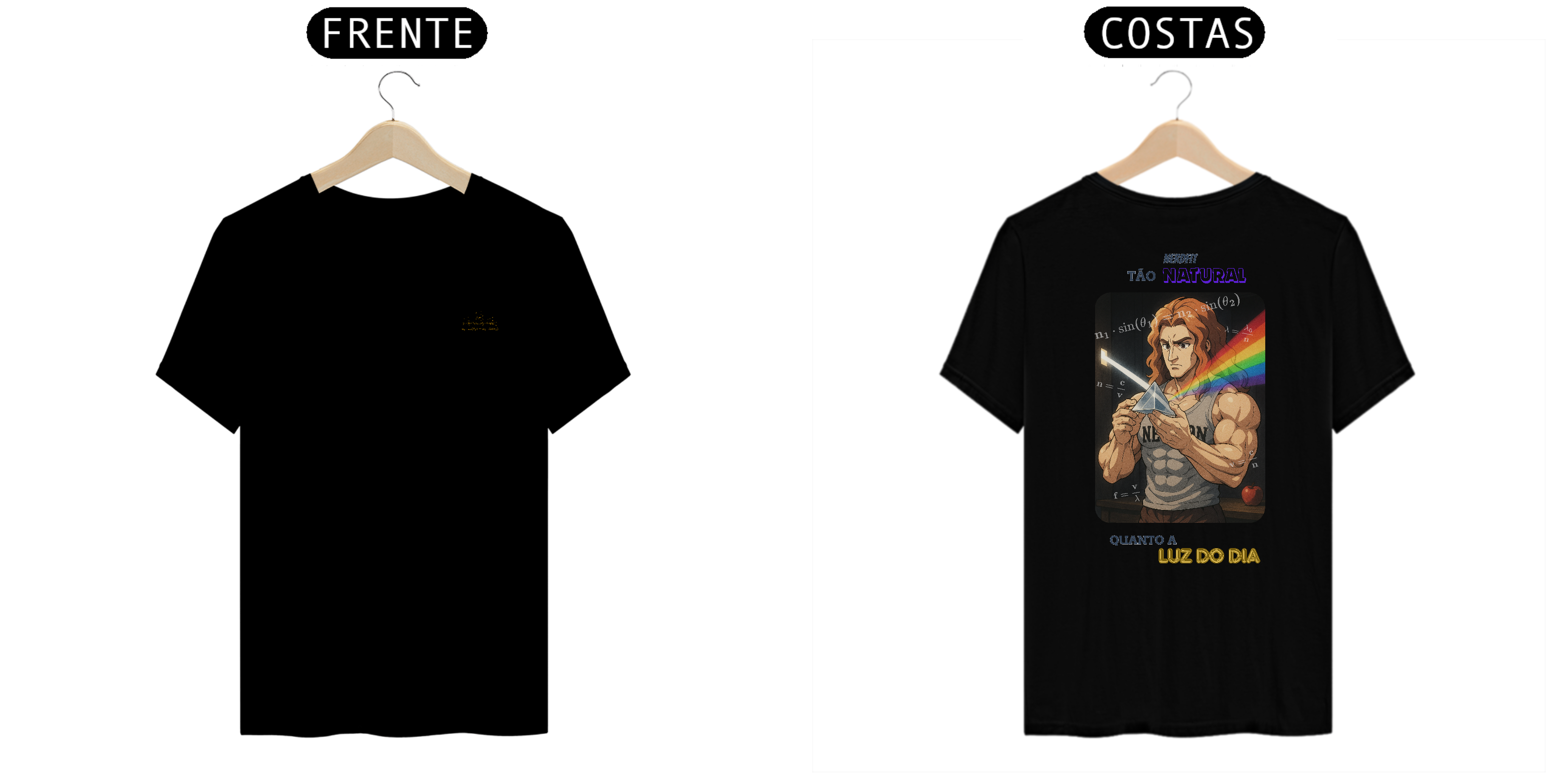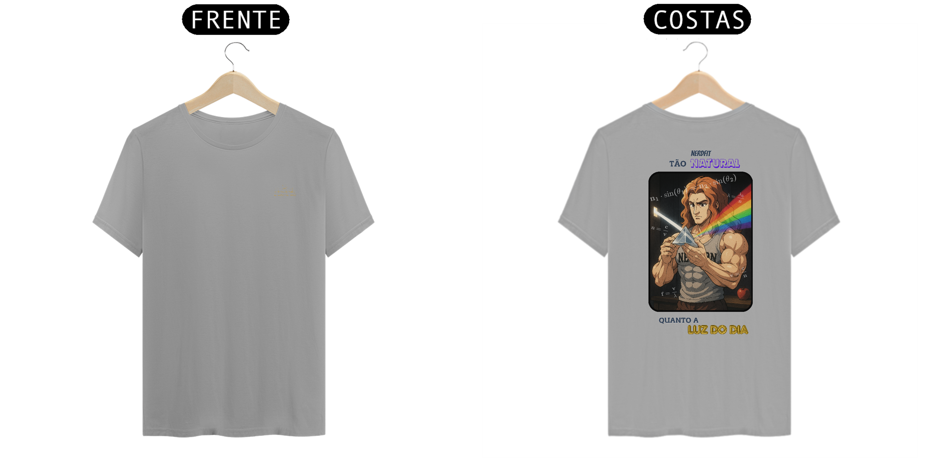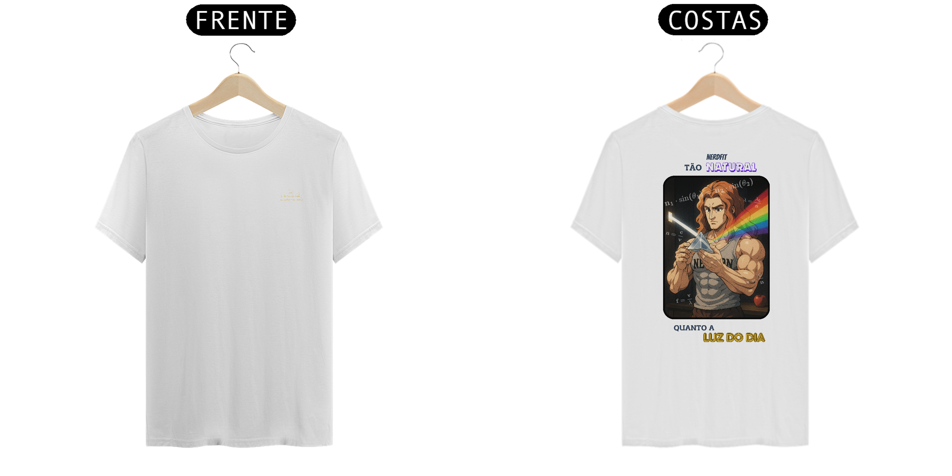 Nesta estampa exclusiva da NerdFit, Newton aparece como você nunca viu: em forma, focado, e ainda desvendando os mistérios do universo com a mesma intensidade de quem não pula o treino de dorsal. Enquanto separa o espectro da luz com um prisma em mãos, ele nos lembra que ciência e força são uma combinação naturalmente brilhante.
